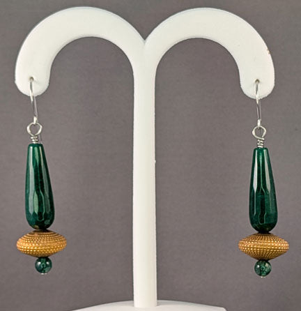 Vintage Beaded Earrings: Copper rondelle with green onyx and jade